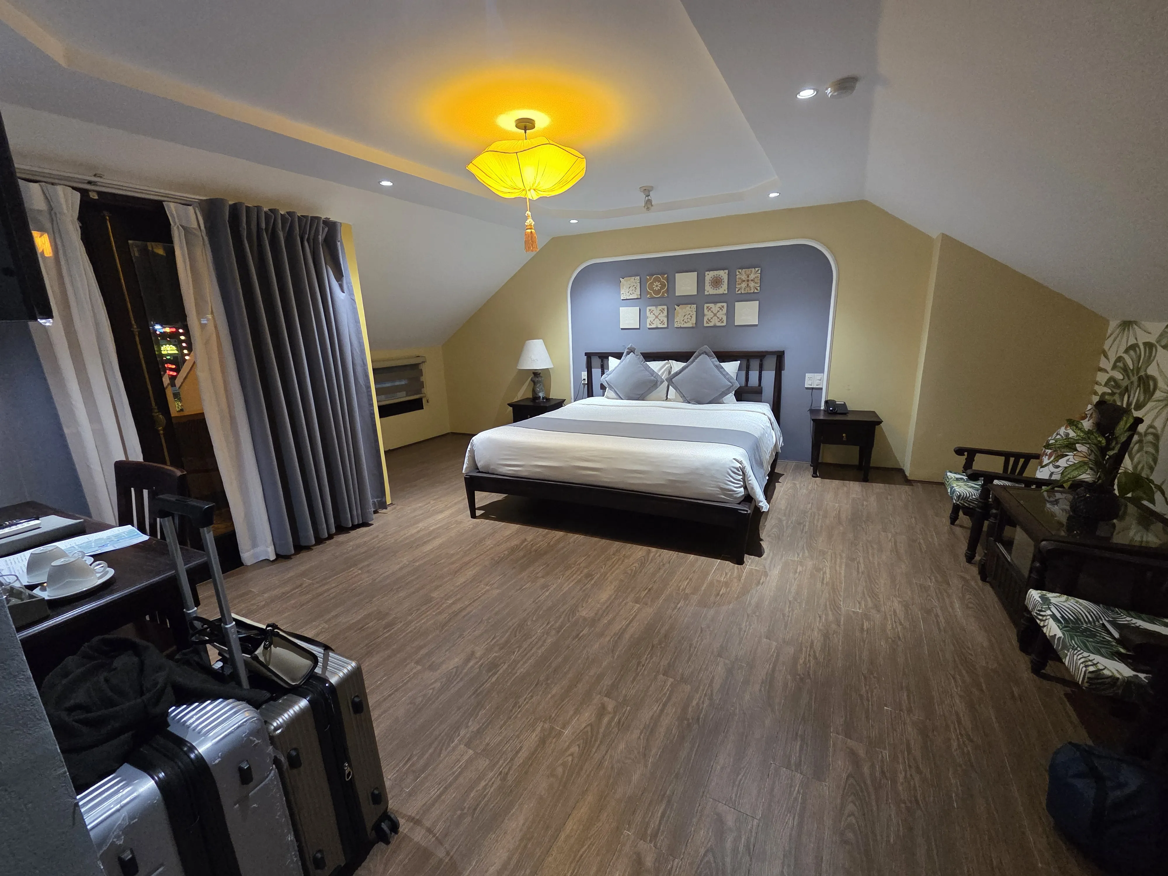 飯店裝潢採用了標準的會安風格——溫暖的黃牆、復古的地磚以及木質調的家具。整體氛圍營造得非常優雅且具歷史感,讓你在飯店內就能感受到濃濃的越南文化氛圍,非常適合喜歡拍照的朋友。